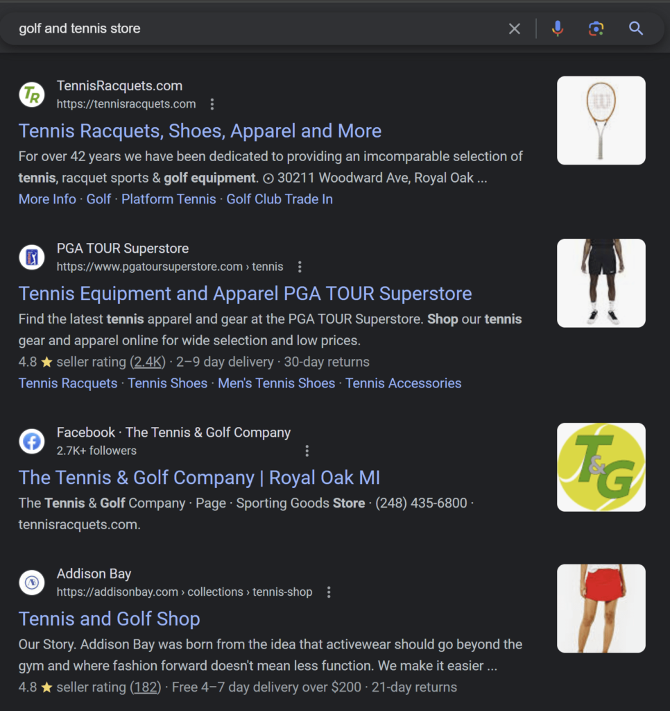 • #1 Google ranking for primary keyword “Tennis Racquets”